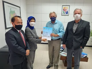O diretor-presidente da Adasa, Raimundo Ribeiro, e o diretor Vinícius Benevides receberam nesta terça-feira (1/2) a ministra-conselheira da Embaixada da Indonésia em Brasília, Makhya Suminar, e o assessor de Assuntos Políticos, Albert Leopold Pondaag. Durante a visita, foi apresentada a proposta do país, que é candidato a sediar, na província de Bali, o 10º Fórum Mundial da Água, em 2024